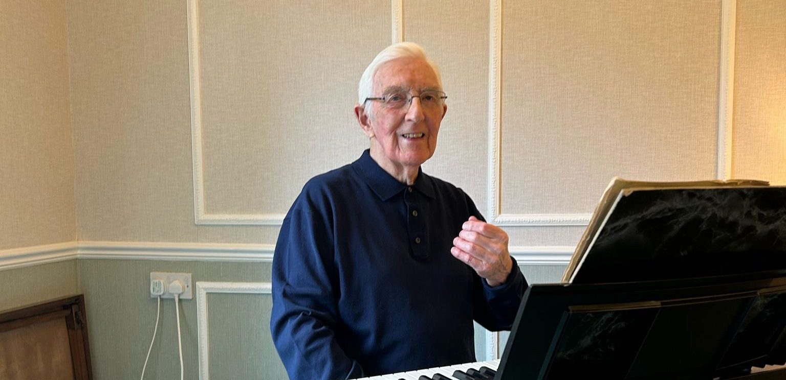 Peter Cruwys is a resident at the Later Living development in Cheltenham. A talented musician, Peter invited his neighbours to join him in the communal lounge for an afternoon of live music performed by Peter himself, whilst raising money for Macmillan Cancer Support.